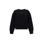 Cotton Essential Terry Sweatshirt by Alexander Wang, featuring ribbed crew neck, ribbed cuffs, ribbed hem, contrasting iconic brand logo on front, monochrome design, regular fit.
