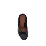 Amina Muaddi Black Calf Leather Bos Taurus Stiletto Heel Sandals