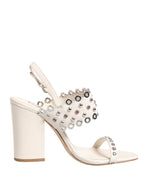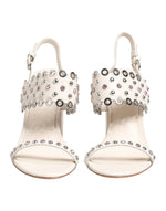 ASH White Block Heeled Studded Quarter Strap Sandals Shoes