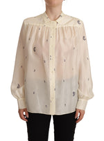 Aspesi Off White 100% Silk Long Sleeves Collared Top Blouse
