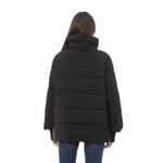 Indulge in the epitome of Italian elegance with the Baldinini Trend Short Down Jacket. This sleek black piece is not only stylish but also functional, boasting external threaded pockets for your essentials. Its adjustable hood caters to your comfort in any weather, while the Baldinini Trend metal monogram adds a signature touch of luxury. With a front closure featuring a chic zip and pull, this jacket combines practicality with high fashion sensibility, perfect for the bold and trendy woman on the go.