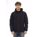 Blue Polyester Jacket External Threaded Pockets Baldinini Trend Monogram Front Closure with Zip and Zipper Pull with Logo Designed for Men Material: 100% Polyester Size on Tag: 3XL