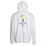 Balenciaga White Cotton Logo Hooded Pullover Oversize Sweater