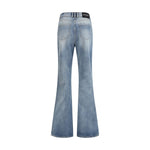Balmain’s Flare Jeans revisit a denim classic with iconic details and a sleek silhouette. The five-pocket style is enriched with a waistband with belt loops, including a distinctive triple loop at the back. The front closure is enhanced by the distinctive “Gold and Silver Coin” metal button, complemented by a zipper and flap for a bold and recognizable touch of style.
