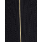 Balmain’s midi Skirt enhances the silhouette with a ribbed and twisted knit, giving structure and movement to the garment. On the front, the characteristic decorative "Coin" buttons in gold metal, the house’s iconic signature, stand out. The back closure is entrusted to an exposed double zipper in gold metal, with sliders engraved "Balmain Paris." Contrasting ribbed trim completes the design for a sophisticated and recognizable look.