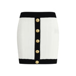 Balmain’s mini Skirt enhances the silhouette with a refined ribbed knit. Decorative gold metal "Coin" buttons at the front add an iconic and distinctive touch, while contrasting ribbed trim completes the design with character and sophistication.