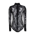 The Balmain lace Bodysuit is a seductive and sophisticated piece, featuring a refined high neck that enhances the elegance of the design. Crafted from sheer lace, it features a zip fastening on the back and buttons on the briefs, for a comfortable and structured fit. A distinctive piece, perfect for bold and feminine looks.