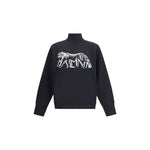 The High-neck Sweatshirt stands out for its bold and contemporary character. Crafted with ribbed detailing at the collar, cuffs, and hem, it features a raised velour front print highlighting the brand’s logo, adding a refined touch to a piece with a strong urban spirit.