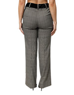 BENCIVENGA Gray Wool Blend Plaid Straight Leg Velvet Waist Pants