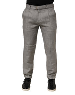 trousers are crafted from fine gray fabric, tailored with a mid-rise waist and a skinny fit for a modern, polished silhouette. Designed as formal dress pants, they are perfect for professional settings, evening events, or refined smart-casual occasions, offering both comfort and elegance.
