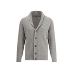 The Virgin Wool Shawl-Collar Cardigan blends comfort and refinement in a timeless silhouette. The ribbed texture enhances the natural softness of the yarn, giving the piece structure and depth. Button fastening highlights its classic character, while the shawl collar introduces a touch of effortless elegance. A wardrobe essential designed to bring style and ease to everyday moments.