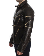 Dolce & Gabbana Brown Lambskin Leather Zipper Jacket