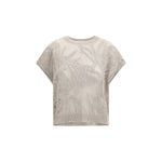 The Dazzling Water Lillies T-shirt by Brunello Cucinelli is crafted from a refined linen and cotton knit, enhanced by a special workmanship that highlights the garment’s texture. Featuring a ribbed crew neckline, deconstructed shoulders, and a ribbed hem, it offers a light, contemporary silhouette that reflects the House’s natural elegance.