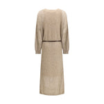 The perforated knit Dress by Brunello Cucinelli embodies natural elegance through refined craftsmanship and subtle luminosity. The adjustable belt enhances the silhouette, while the delicate sequin embellishment brings a soft touch of light. The internal slip ensures comfort and fluid movement, completing a piece that blends artisanal mastery with the timeless grace of understated sophistication.