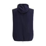 Brunello Cucinelli’s waterproof Vest is a functional and sophisticated garment, perfect for adding a touch of luxury to your casual looks. The model features a drawstring-adjustable hood that offers additional protection. The front closure with a double-slider zipper ensures practicality and ease of use. The two zippered side welt pockets provide secure space for your belongings. The brand’s iconic contrasting logo on the front adds a distinctive detail, while the elasticized waistband ensures a comfortable fit. With its monochrome pattern and regular fit, this vest is ideal for those seeking a simple yet elegant style without sacrificing functionality.