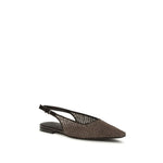 The Precious Net Embroidery slingback Ballerinas by Brunello Cucinelli combine elegance and comfort, with a leather sole and TPU rubber sole equipped with non-slip inserts on the heel and toe. Closure is via an adjustable strap, and the model is embellished with a delicate nickel-free jewel decoration.
