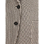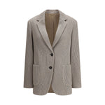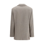 Brunello Cucinelli’s Lurex Jacket is an elegant and sophisticated piece, perfect for adding a touch of sparkle to any outfit. The ribbed design gives a refined texture, while the peaked lapels and front button closure enhance the silhouette. The two patch pockets on the front add functionality without compromising style, making this jacket ideal for formal looks or to give a luxe accent to a casual look.