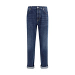 Brunello Cucinelli Blue Cotton Straight-Leg Jeans