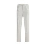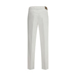 Brunello Cucinelli’s cotton gabardine Pants combine sartorial elegance and functionality in a garment with a refined, contemporary style. The design features a zipper, button, metal hook-and-eye and counter-button closure for a secure and comfortable fit. American-style front pockets, darts and back welt pockets define a classic, well-structured silhouette. A distinctive detail is the practical applied tee holder on the leg, while the plain bottom completes the essential and versatile look.