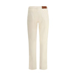 Brunello Cucinelli’s signature cotton Corduroy Pants combine elegance and comfort, thanks to their corduroy design that lends a sophisticated texture to the garment. The five-pocket design offers functionality and practicality, while the front button closure and belt loops on the waistband allow for an adjustable fit. A distinctive touch is provided by the logoed leather patch applied to the back, which adds an element of understated luxury.