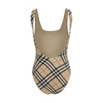 Burberry’s One Piece Swimsuit is an elegant and iconic design embellished with an all-over Archivio Check pattern. It features a straight neckline, thin straps and a deep back neckline for a feminine and refined silhouette, perfect for timeless style even at the beach.