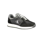 Elevate your sneaker game with the Calvin Klein edge. Crafted for the modern man, these dynamic sports shoes blend sleek black sophistication with bold contrasting details in grey and white that demand attention. Designed for both style and comfort, they feature a removable insole for a customizable fit. Etched with the iconic logo, they speak volumes of fashion with every step.