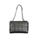 Elevate your accessory game with the eco-conscious chic of this Calvin Klein handbag. Effortlessly versatile, it boasts a sleek black hue with contrasting details that add a pop of sophistication. Two chain handles provide a glamorous touch while the turnbuckle closure secures your essentials. Practical yet fashionable, it comes with an external pocket and roomy dual compartments, including an internal pocket for organization. Made from 100% recycled polyester, this bag is as kind to the planet as it is to your style.