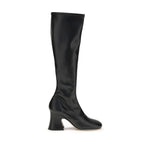 The Janis heeled boots by Chloé are crafted from soft stretch fabric with a leather-effect finish, providing a second-skin fit. Featuring a stacked bell heel, they combine a high tubular design with a slightly squared toe for a modern and elegant look.