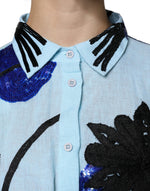 Christian Pellizzari Light Blue Floral Embellished Shirt Maxi Dress