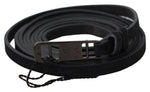 Costume National Black Leather Skinny Logo Buckle Belt