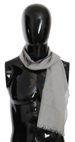 Costume National Gray Fringe Neck Wrap Cotton Scarf