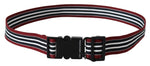 is crafted from leather fabric, this stylish belt featuring stripe black and red design and a buckle fastening.