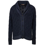 Trecce Cashmere Cardigan Cruciani. Blue color, knitted with cables, shawl collar, front fastening with buttons. Composition: 100% Cashmere