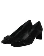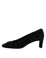 DEL CARLO Black Suede Leather Slip On High Heels Pump Shoes