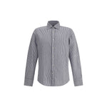 Cotton Seersucker Shirt by Deperlu, classic collar, front button closure, elastic fabric, all-over repeated stripe pattern, regular fit.
