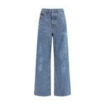 The 1996 D-Sire Jeans by Diesel channel a bold, contemporary attitude. Designed with a relaxed low-rise fit, they feature a dropped crotch and an extra-long wide leg, creating one of the most voluminous silhouettes in the denim collection. The soft, oversized construction enhances movement and statement appeal. Finished with a button fastening for an authentic touch, they stand out for their striped faded wash with irregular lightened bands, inspired by artisanal treatments that give depth and a unique character to the fabric.