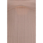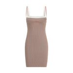 The M-Zandra Dress by Diesel embodies a sensual, contemporary aesthetic with its figure-hugging bodycon silhouette. The double-layer construction brings depth and structure, pairing a soft fine-rib knit with a contrasting inner tank. The subtly framed bust evokes lingerie-inspired elements, a signature detail that echoes the bold, experimental language showcased throughout Diesel’s runway collections.