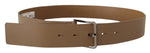 Dolce & Gabbana Beige Calf Leather Wide Silver Metal Belt