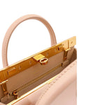 – Composition: 100% calf leather – Lining: Lamb Leather – Two top handles – Detachable shoulder strap – Detachable chain embellishment – Gold-plated metal turn-lock fastening – Length 19 cm, Height 13,5 cm, Width 7 cm – Made in Italy – Gender: WOMEN –