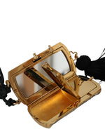 Dolce & Gabbana Beige Exotic Leather Mini Mirror Tassel Make Up Holder Bag