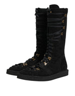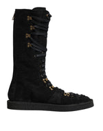 Dolce & Gabbana Black Alpaca Wool Suede Mid Calf Boots Shoes