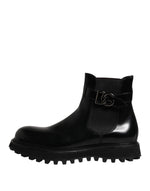 Dolce & Gabbana Black Belted DG Logo Men Chelsea Boots Shoes