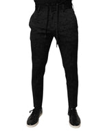 Dolce & Gabbana Black Brocade Polyester Skinny Dress Pants