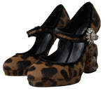 Dolce & Gabbana Black Brown Calf Leopard Heel Mary Jane Pump Shoes
