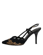 Dolce & Gabbana Black Brown Lace High Heels Slingback Shoes