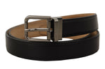 Dolce & Gabbana Black Calf Leather Logo Engraved Metal Buckle Belt