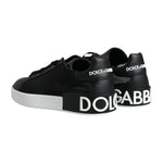 Dolce & Gabbana Black Calf Leather Portofino Sneakers Shoes