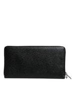 Dolce & Gabbana Black Calfskin Leather Logo Zip Around Continental Wallet