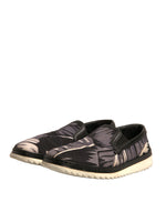 Dolce & Gabbana Black Canvas Tropical Print Slip On Shoes