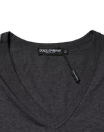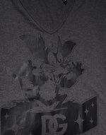 Dolce & Gabbana Black Charcoal DG Logo V-Neck Men T-shirt